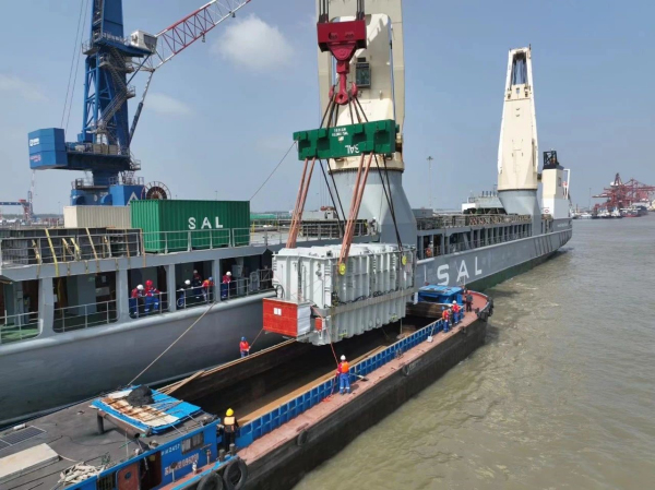 本次发运的主变压器本体运输重量为286吨,采用德国SAL公司旗下起吊能力达2000吨的重吊船进行装运。设备发运过程中,国际公司物流管理团队根据设备出厂时间灵活选择装运船舶、高效制作运输方案、精准把控受载船期,高质量完成了本次装船作业,成功迈出了主变压器本体多式联运工作的第一步,为即将到来的总行驶里程近28000公里的洲际远洋运输、内河内海运输、跨国内陆运输夯实了基础。